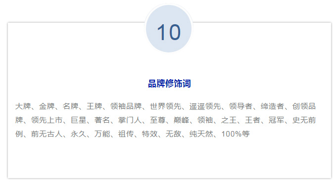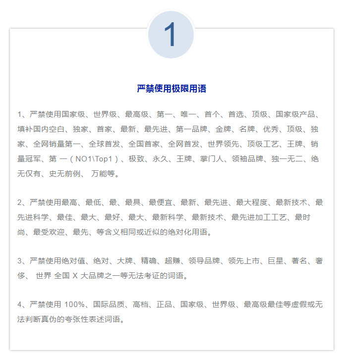 我們在制作網(wǎng)站、小程序的商品標(biāo)題、頭圖、詳情頁、推文等商品信息的時候,除了制造賣點吸引消費者外,還需要注意避開一些廣告法禁止的宣傳用語,避免中招。
